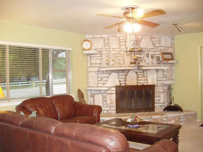 Charming native rock home offering an open floor plan with rock fire place in the living area. Saltillo tile in the dining area over looking the beautiful mature trees in the back yard. Large master bedroom with sitting area. Both bedrooms have walk in closets. Double attached garage with utility room in the garage. Decorative stone fence in front yard, concrete drive way large enough for an RV. Fenced garden area in back yard with work shop.