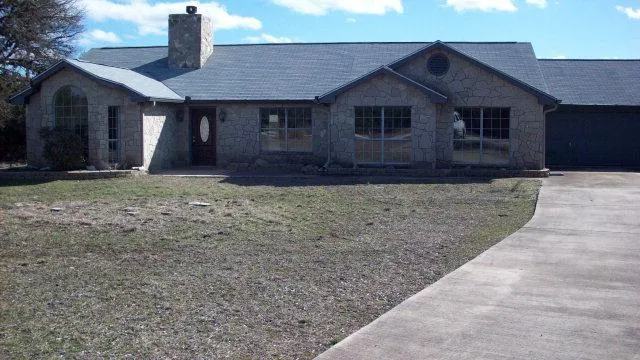Lot of home for the money. Master closet is 14x6, master has seperate water heater. Rock fireplace in spacious living room. Family gathering size dining room. Kitchen has breakfast bar and breakfast area. Appliances include refrig, dishwasher,microwave,range. Large covered patio runs full length of back of home w/5 ceiling fans. Alum framing, rock 4 sides. Level lot, licensed septic system. Dining room is large enough for pool table. Master bath has jetted tub and seperate shower, double vanity, tile floor. Master bedroom has french doors that lead to a private patio. Garage is large enough to built a small workshop. Sale is AS IS.