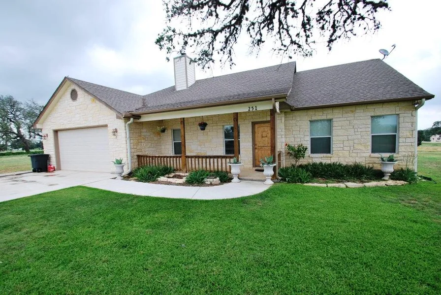 Highly desired 3-2-2 split floor plan by Green Valley Custom homes. End of the road privacy in the Flying L. Hickory cabinets, majestic rock fireplace, ceramic tile floors & counters, stainless steel GE appliances. Wonderful views from the front patio & hardly a neighbor in sight. If you are looking for privacy in the Texas Hill Country but want civilization near, this is it! Back patio to watch & enjoy deer & antelope. Garage floors painted w/ showroom paint/epoxy. Adjacent lots could be purchased.