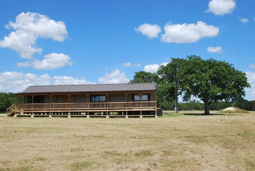 2014 Ponderosa on 16.97 acres. Two bedroom 2 bath w/ study that could be a 3rd bedroom. 960 sq. ft., here's your chance to own your own Tiny House. Great open floorplan, metal roof, metal exterior pier & beam. 60X8 covered deck on the front to take in the expansive Hill Country views . Great potential horse property, there is already an pipe fenced arena & property is completely fenced. New well, new septic & new storage building. The hill country views are breathtaking, pictures don't show, a must see! PENDING