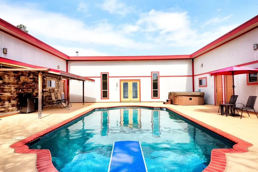 This fabulous property has it all...country living at it's best. The Spanish style, open plan house has been beautifully renovated with hard woods, accent metals, Saltillo tile floors, vaulted ceilings & a huge laundry room & three sides open onto the pool/patio. The property includes an oversized garage with large workshop area, a huge chicken house with space for 50 chickens & a large fenced & netted yard, a 1/1 guest house, she shed and storage. There is a 350 rain water collection system, privacy fencing, 2 fenced pastures, each with shelter & water for the animals. The RV hookup...