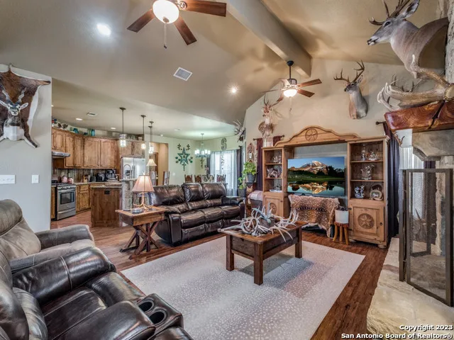 "AG EXEMPT" UNRESTRICTED 8 Acres - Embrace the rustic charm of Texas living with this fabulous home & shop set on 8 unrestricted acres! 40 x 45' shop, 3bed/2bath 2173 Sqft home that is private & secluded, RV Hookups w/50 & 30 AMP, along with 110 plug. This faulous property offers a wonderful view of the Texas Hill Country! Step inside, the open floor plan welcomes you. Centered around a cozy fireplace in the living area, perfect for gathering with friends & loved ones. The kitchen is a chef's delight, boasting ample cabinetry, generous granite countertop and stainless-steel appliances. The inviting kitchen island, KINETICO WATER SYSTEM whole house, Demand hot water heater, with casual bar seating, ideal for morning coffee or evening conversations. Each room in the home offers abundant space for rest and relaxation, ensuring comfort at every turn. Step outside to the covered patio, a sere...
