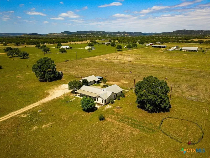 Nestled in the beautiful Texas Hill Country, this charming home sits on 5.58 acres in the delightful town of Medina. Enjoy privacy and views of the rolling hills from the relaxing, back porch. This home offers open concept living, perfect for family gatherings. High ceilings and a wood-burning fireplace making the living area extra cozy. Three bedrooms, a split floorplan, and an oversized master bedroom and bath featuring garden tub and a walk-in shower. Guest Bath walk-in shower. Two car detached garage and a shop area... this property has it all. Perimeter fenced and cross fencing, gated for extra privacy. Tack room and workshop attached to the back side of garage.