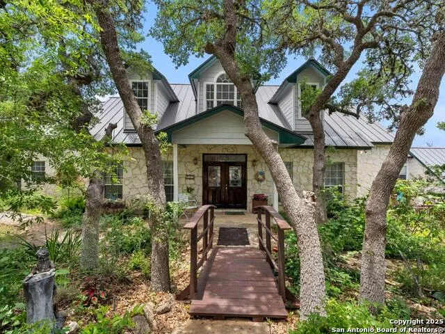 Perched atop a scenic hill overlooking Medina Lake, this stunning home is the ultimate Hill Country escape. Surrounded by mature trees and accessed through a gated entrance, this property offers the perfect blend of privacy, luxury, and unforgettable views. With 3.72 acres and over 500 feet of Medina Lake frontage, this is your opportunity to own a piece of Texas beauty. Inside, the elegant interior features soaring ceilings, a surround-sound system, a cozy fireplace, and windows that fill the living space with natural light. The chef-style kitchen offers ample cabinetry and room to prepare meals for a crowd. Step into the expansive primary suite, where a fireplace, bay windows, and private balcony access create a serene retreat. Upstairs, the loft area makes a perfect game room or second family room. Two additional bedrooms, each with attached bathrooms and access to the upstairs balcon...