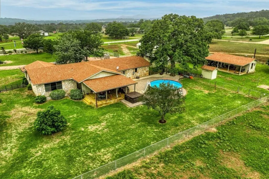 Key Features: Home: Enjoy a comfortable 1,656 sq ft home with a 2-car garage, featuring 3 bedrooms and 2 bathrooms, originally built in 1978 and recently updated with modern amenities. Stunning Views: Immerse yourself in the breathtaking hill country scenery, with views in every direction. Room to Roam: With 5 acres of land, youll have plenty of space for outdoor activities, gardening, or simply soaking up the tranquility of nature. Equestrian Friendly: The property includes a 2,300 sq ft barn equipped with 2-horse stalls, perfect for horse enthusiasts. Work and Play: A 372 sq ft workshop provides ample space for hobbies or projects, while the RV shed with plug-in ensures youre ready for adventure. Relax and Unwind: Cool off in the above-ground pool, perfect for enjoying the warm Texas weather. Then you can unwind in the hot tub. Community and Privacy: Located in a small subdivision where properties with acreage ensure youre not crammed together, offering both community and privacy. Convenient Location: Enjoy the best of both worlds with country living just minutes from the town of Bandera.