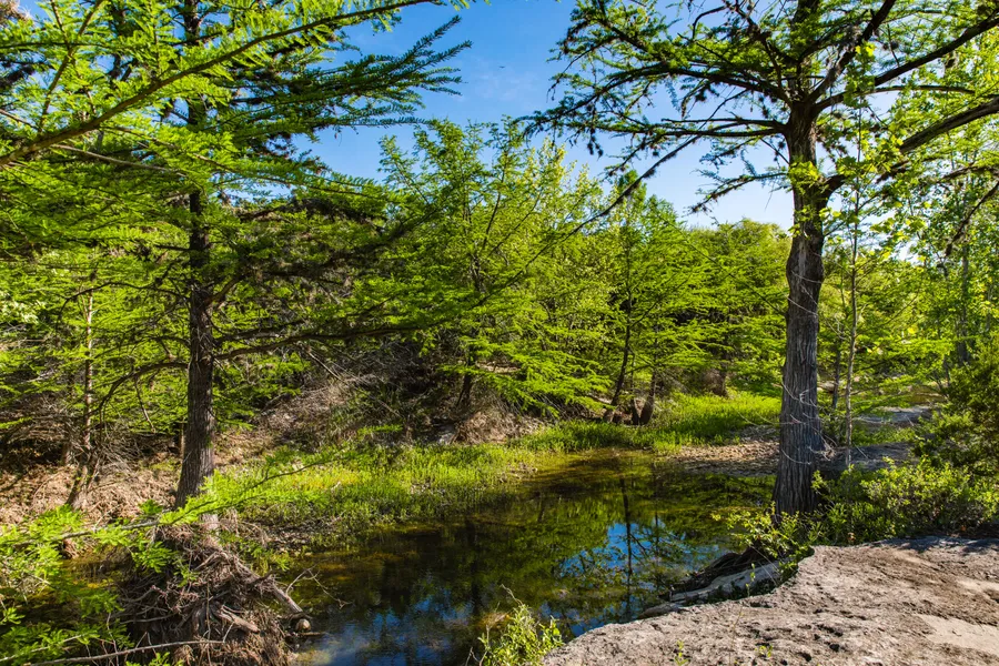 Live water and splendid views describe this unique Hill Country gem. Located just 2.5 miles southeast of Bandera, this 100 acre ranch offers two springs that meander through the property before flowing into San Julian Creek which flanks the western side of the property for 3,300 feet. Beautiful hardwoods canvas the gently rolling landscape.