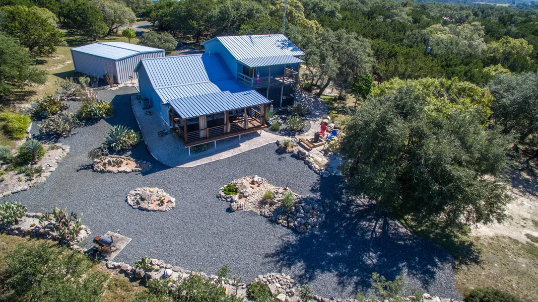 Located just minutes east of Utopia on the Thunder Creek Subdivision, this exceptional turnkey property offers first class amenities as well as beautiful live water and incredible Hill Country Views. The property offers paved county road access, excellent water well, two electric meters, fenced garden, a very comfortable 2 story home , an insulated 3 car garage and a 1400 square ft metal building with air conditioned workshop with loft, a 9000 gallon rain collection system and drive through RV storage area. The country style home is surrounded by large healthy Oaks and offers 2 bedroom 2 1/2 bath , spacious living room, large open dining and kitchen area with updated modern appliances, large island with siltstone counter top and wine cooler, media room complete with surround sound and high speed internet service, downstairs master bedroom...
