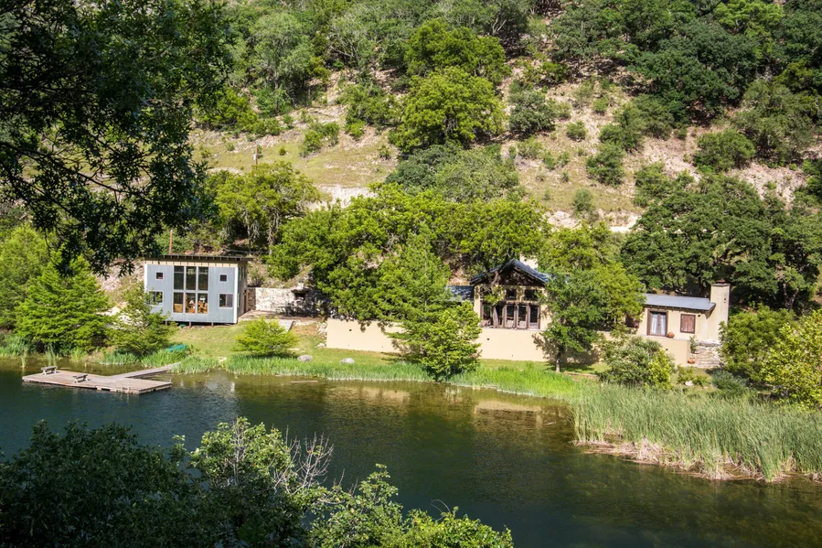 The rustic but comfortable home was built around an original 100 year old cabin; design, construction and decor perfectly suits the ranch. The family compound offers a main home that features 2 bedroom, 2 bath, Tile and concrete floors, multiple fireplaces, outdoor fire pit, loft, great room with Bar and sink, inside porch, huge wooden decks, a Mexican style 'Casita' and multiple outdoor cooking areas with fireplaces. A large limestone patio connects the main home to a very unique lakeside guesthouse with sleeping quarters and loft that provide quarters for additional guests or family. The patio/entertainment area was built to accommodate large numbers of friends and or family and the compound will sleep as many as 24 people with all beds filled. A rock walkway leads down from the limestone patio of the home directly to the fabulous lake and a large floating dock provides easy access for boating, tubing, swimming and fishing. The incredible lake is as deep as 30 ft and offers the owners endless entertainment as well as excellent Bass and Catfishing. Additional improvements on the ranch include a well built wooden equipment/feed barn with overhead recreation room/sleeping loft, and a small cozy cabin above the creek.