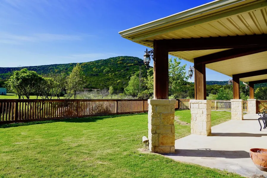 IMPROVEMENTS & HIGHLIGHTS : Hard to Find Small Riverfront Acreage ; Beautiful Grand Electric Gated Entrance ; Gravel Driveway lined with Vivid Color-Changing Maple Trees ; 1 Bedroom - 1 Bathroom Loft-Style Vanderpool Villa surrounded by Panoramic Mountain, Vineyard, River and Valley Views ; Wrap-Around Porches ; Attached Recreation Quarters complete with Bar, Half-Bath and Large Covered Patio ; Fenced and Landscaped Front and Side Yard ; Eye-Catching Landscaped Garden constructed with a Natural Stream Bed Water Feature, Boulders, Flowers, Greenery and a Small Bridge ; Party Pavilion equipped with Lighting, Sink, Storage, BBQ Grill and Stone Pizza Oven ; Large Covered Parking / Storage Barn