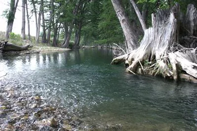 Towering Cypress line the banks of the flowing Medina, providing serenity & year around recreation, just minutes from downtown Bandera.