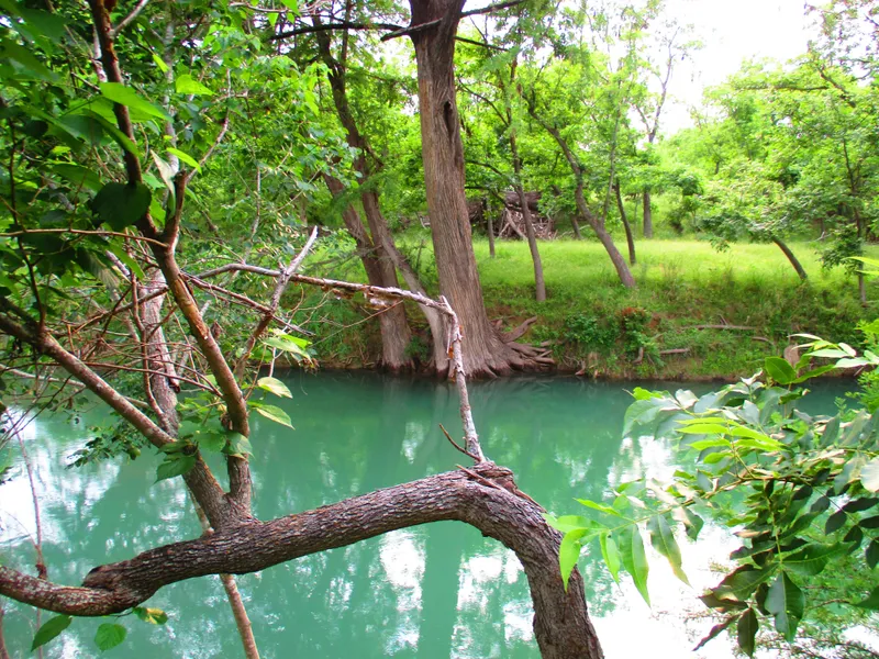 Beautiful Medina River Waterfront just outside of Bandera Texas. Plenty of oaks on the bluff and many pecans, cypress and oaks on the river bottom.