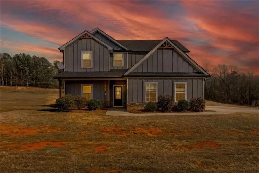 BEAUTIFUL HOME IN BANKS COUNTY! Built in 2021, this Craftsman home has 4 bedrooms, 3.5 bathrooms, and is situated on 2.3 sprawling acres. The owner's suite is on the main floor, featuring a massive tile shower, 2 separate vanities, and a walk-in closet that actually could be another room in itself! Seriously. Through the front door, into the foyer, you will pass by a half bath that leads to an open concept kitchen/living area. The living area has a stone, wood burning fireplace that flows into the kitchen with granite countertops and white cabinets. Upstairs, there's a massive media room, along with 3 bedrooms and 2 full baths. Let's talk about the awesome back porch... there's an outdoor fireplace and a perfect spot for your family movie nights or getting together to watch the game. Since there's no HOA, you won't have anyone telling you where to park your boat or RV. You will have plen...