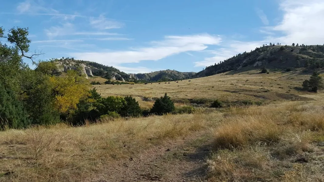 In addition to several useful outbuildings there is a lovely family home featuring three bedrooms, an office, and a fully finished walk out basement. The home has a tremendous view of the dramatic buttes of the Wildcat Hills. There is also an older, smaller home that can be leased to an outfitter or to hired hands, and a cabin outpost with horse pens for extended overnight rides on this picturesque ranch.