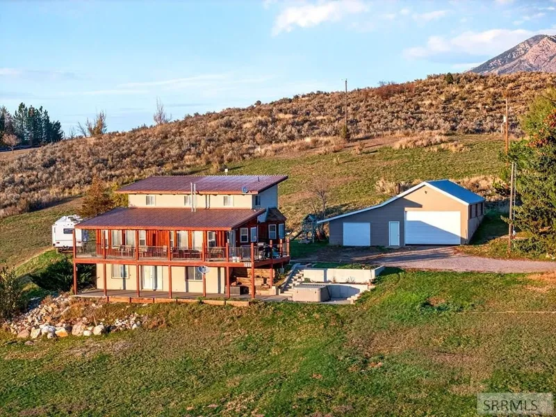 Escape to your own rustic retreat in this stunning log home set on over 3 acres in a peaceful setting. With views for days, this spacious property offers 6 bedrooms (including 2 with private en-suites) and 3.5 baths. The main level showcases vaulted ceilings with exposed wood beams, a warm, inviting atmosphere, and seamless flow to the wrap-around deck. Soak in the scenery in the included hot tub! The finished walk-out basement provides additional living space, while the detached 3-car garage/shop offers ample room for vehicles and hobbies. Enjoy the orchard with automatic sprinklers, and upgraded furnace (2021) for year-round comfort. Conveniently located with easy I-15 access and just minutes from Pebble Creek Ski Area, this property combines rustic charm, modern comfort, and incredible outdoor living.