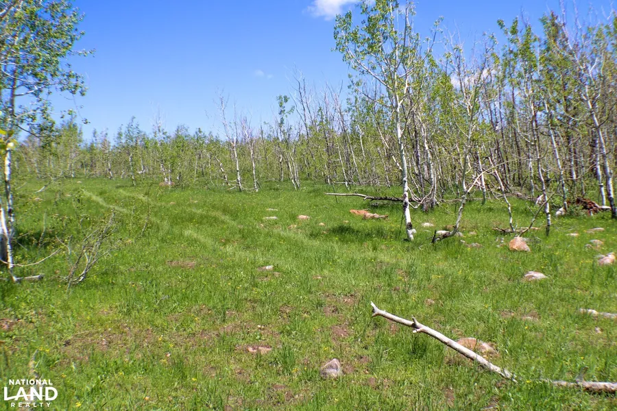 As you step onto the gently sloping terrain, you'll be greeted by a picturesque landscape adorned with vibrant aspen and pine trees, covering approximately 1.75 acres. The remaining 3.25 acres boast open grasslands, providing ample space for your creative endeavors. Whether you envision a cozy cabin retreat or a sprawling recreational haven, the possibilities are endless.