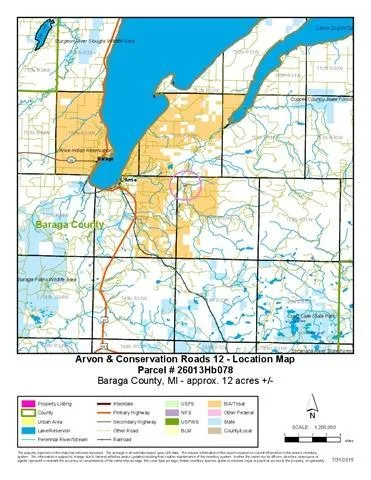 This 12 acre parcel is close to L'Anse on Arvon Road just past the end of Dynamite Road, and affords a great building site for a cabin or home. It's really just 4 miles from downtown L'Anse. The parcel's terrain is sloping upward from the road and is comprised of regenerating trees with a little wider clearing up higher on a main logging road. This logging road is covered with natural grass vegetation and appears to be sandy soil. There are larger growing trees left scattered around the parcel. The east end of the property is flatter and has a mix of older conifers. The Silver River appears to be on or just outside the west tip of the triangular property. A nice bridge crosses the river. The Silver River is a clean running river offering excellent fishing with Spring runs of Steelhead, fall migrations of salmon, and resident brook trout populations. The main stream descends through rugged topography that ranges in elevation from 1600 ft. near the headwaters further south and east to 690 feet at the mouth in a short 20 miles. The wide stream valley is narrowed in spots by bedrock outcroppings. Call us to take a look at this nice 12 acre building site.