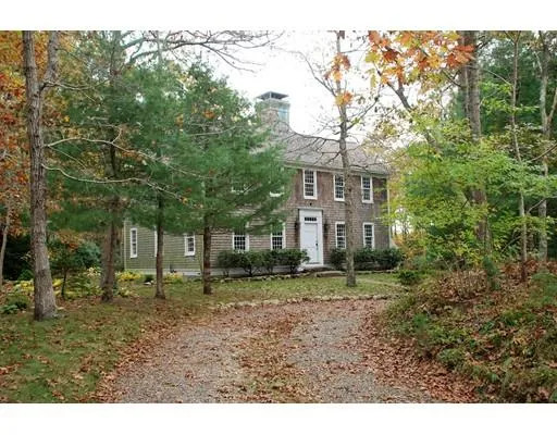 WELCOME HOME to this Center Chimney Saltbox in Jacobs Farm Village! Step inside and admire the attention to detail; beautiful wide pine floors throughout the entire home add to its period charm, large dining room & sitting area with oversized fireplace, bright kitchen with a terrific walk in pantry too! Formal living room with wood stove that can heat the home this winter. Den with custom built ins offers endless uses. Upstairs you will find 3 bedrooms and a lovely updated full bath. All new Anderson 400 series windows, walk out basement for future expansion, outdoor shower, stone walls and brick accents showcase the gardens. Detached 2 car garage with storage above. Lovely circular driveway and .92 acre lot offers privacy galore! Title 5 in hand... ready to close!