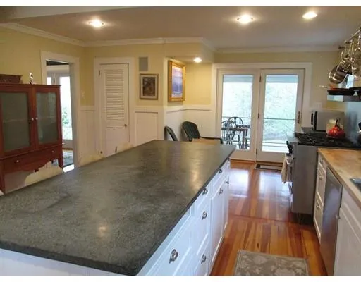 Cape Cod style country home tastefully renovated throughout in the center of the village. Situated privately on a bucolic, unspoiled, and picture perfect 1.53 acre parcel. 2nd floor bedrooms are very spacious and light with full common bath. One bedroom on the first floor with full bath and full access to outside through French style glass doors to deck and patio. Living room has custom F/P with mosaic hearth and built ins on either side complete with window seat with storage. Formal DR, built ins, French doors to deck and patio. Large chefs kitchen, has 6 burner gas stove, and large soapstone island w. storage. Walk in pantry w. window. Screened porch & front & back stone patios. A truly verdant landscape not to be missed! All new windows and doors, new roof. Character abounds here. You can make this home yours now or someone else will!!! Very easy to show.