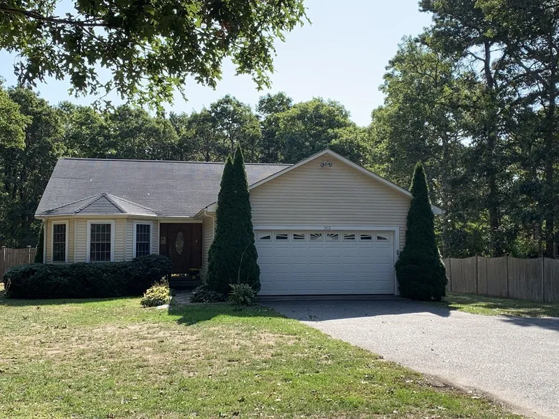 Enjoy Mashpee in this sprawling 3 plus bedroom Contemporary ranch, one floor living at its best! This home has a large eat in kitchen With stainless appliances Granite countertops and plenty of space to entertain. The open living area has gleaming hardwood floors And Cathedral ceilings, off the living area are 2 quaint rooms, sitting room as well as possible office. The master is equipped with a generous walk in closet, private bath with dual sinks and French doors leading to a quaint deck over looking a private cozy Partially fenced in back yard. Two other generous bedrooms first floor laundry and convenient 2 car attached garage add to the simplicity of this homes layout! A large basement with plenty of room to finish if you desire. Nature lovers may enjoy the extended wooded back yard with destination walk to the Mashpee River.