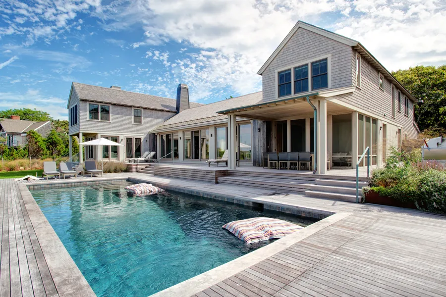Welcome to this Luxurious Cape Cod Contemporary home in the desirable Quissett Harbor neighborhood with spectacular views of Buzzards Bay. Enjoy the benefits of swimming in your own private pool, lounging in the sun overlooking the ocean or watching extraordinary sunsets from the deck. Stroll down to the Carey Lane Association Beach, watch the boats come and go from Quissett Harbor, and explore the well-known walking trail to the Knob near- by. This home is all about the Cape Cod Lifestyle, tranquil water views from nearly every room, beautifully furnished, a fabulous open floor plan, 2 sun rooms, and a finished lower level with a media room and private gym, Central AC, and WIFI. The home is in close proximity to Woods Hole, West Falmouth, and Downtown Falmouth. There is a 1st floor Master with a King size bed, and private Bath with shower. The second floor has 4 additional bedrooms. The...