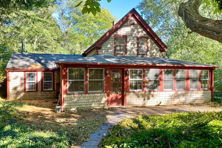 This 1850 Circa charming Greek Revival, with a separate cottage, just might touch your heart. Tucked down a private driveway with the opportunity to stroll along the bucolic deeded path to Arey's Pond from the rear of the property. Launch your kayak or paddled board? The wrap around screened in porch adds wonderful additional living space to the ''Tavern'' Room-both of which were added n later than 1850. And the kitchen and rear upstairs bedroom were added 23 years ago. The separate cottage might work as an office space- with added heat would be quite cozy and separate. Or could it work as separate living quarters? 4 bedrooms, 3 baths.The house is 1158 sf and the cottage is 280 sf. If you are an antique lover put this on your list of must see Orleans properties. CLICK ON UNBRANDED TOUR for interactive floor plans, video, etc.