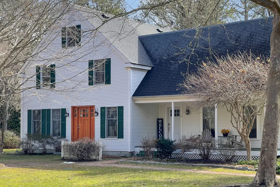 This updated Cape Cod Farmhouse is tucked on a private wooded 1 Acre+ lot, located close to Robbins Pond and the Punkhorns Conservation area. The neighborhood is surrounded by large, new homes all taking advantage of the active, outdoor lifestyle. This 4+ bedroom, updated home was architect designed to maximize the privacy of the setting, and take advantage of the picturesque outdoor living spaces. This family compound encompasses the farmhouse with welcoming Farmer's porch, wraparound deck with wisteria covered pergola, gardens and fish pond. A huge barn can hold 2 cars, separate tack room, 2 Horse stalls in addition to finished guest quarters on the second floor. The Farmhouse interior features large rooms, gourmet kitchen with gourmet cook's stove and granite counters, with lots of counter space. There is ample room for large crowds, with a huge family room on one end, and a living ro...