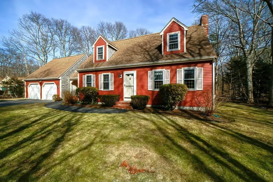 Fabulous opportunity! Classic 3 bedroom cape with 2 car attached garage on a .92 acre level lot. Spacious, eat-in kitchen updated with white cabinets and granite counters. Room to accommodate extra dinner guests in the charming dining room. Expansive living room with lovely fireplace and 6 windows for abundance of natural light. First floor also has a half bath, convenient laundry space and hardwood floors. Second floor offers a generous size front to back primary bedroom, two good sized family/guest bedrooms and a full bath. Great closet space throughout. Huge basement with good ceiling height perfect for storage or finishing. The lovely back yard abuts woods and has an oversized deck perfect for relaxing or entertaining. Excellent location, just steps to Boyden Farm conservation trails; quick access to Route 6 and a short ride to Sandwich village center and Cape beaches. Showings begin Sat 3/13 by appointment.
