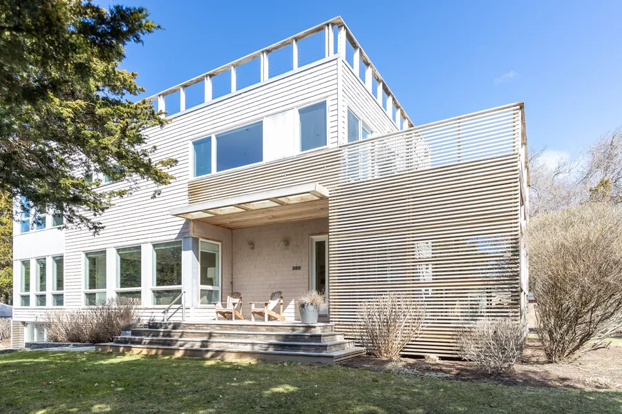 Be dazzled. Architect-designed, artist-owned, stylish modern home, well-sited to take in the sunshine, ocean breezes and expansive water views in prized Mary Chase neighborhood. Your deeded access to Town Cove is just steps away. There is no question that the crowning glory of this home is the unparalleled 1500 sf rooftop deck complete with fireplace and expansive views of town cove and the Atlantic Ocean. Additionally spectacular are the details of the 3000 square feet of curated interior living space plus three decks, a screened porch and a full walk-out basement. Open area living/dining room and kitchen provide for fabulous entertaining. Modern kitchen with 6 burner range, high-end Bosch dishwasher, LG refrigerator/freezer and lots of built in cabinet storage. The kitchen peninsula with room for four counter stools makes cooking a social activity. Fluid floor plan presently set up wit...