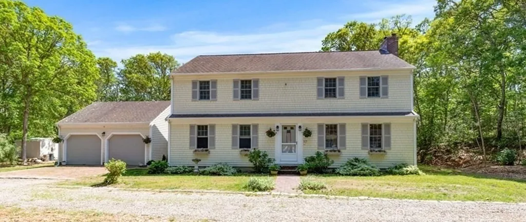 Situated on a sprawling lot affording complete privacy. This elegant home boasts a spacious floorplan featuring an inviting open concept living and dining room with a brick wood burning fireplace plus an adjoining multi-use all season sunroom with skylights for extended entertaining. Eat-in kitchen with new black stainless steel appliances that opens to an oversized deck, first floor master bedroom with en-suite bath, mud room with laundry, powder room and an attached two car garage complete the first level. The second level includes three generously sized bedrooms, a family room with skylight and an oversized bath. Hardwood floors throughout this home. The expansive flat yard with outdoor shower offers endless possibilities with plenty of room for a pool. Ideal central location just a short distance to Bank Street beach, Harwichport Center and everything Cape Cod has to offer.