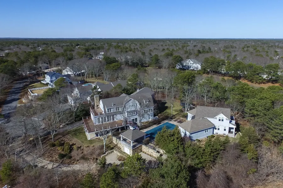 Stunning Family Compound in New Seabury that features 2 magnificent homes, ocean and golf views, pool, 10,000 sqft of living space, 9+ bedrooms. The main house renovated in 2017 features a wide open floor plan on the main level, grand gourmet kitchen, dining area, family room that overlooks the golf course and Nantucket Sound, large outdoor deck, billiard room/home office. The 2nd floor features a master bedroom suite also with golf and ocean views, raised deck with stone fireplace, ensuite bathroom with double vanity, walk-in glass shower. The bathroom connects to a walk-in closet/changing room. Other features on 2nd level are 2 additional bedrooms with shared bath and laundry room. The lower level has a kitchenette for guests, entertainment area, guest suite/ensuite bath, bedroom with adjacent full bath. The guest house (242 Glenneagle) was renovated in 2019 and features 3600 sqft, 4 b...