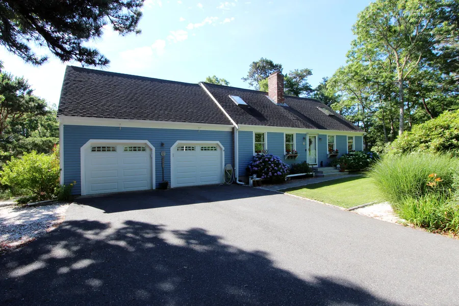 Beautiful 2,400+ SF Cape with a two-car garage on almost an acre of very private land, abutting Nickerson State Park, with a path into the Park from the back yard. The main level of this well-appointed home features hardwood floors, a renovated gourmet kitchen with a center island and gas stove, a sunlit and spacious great room overlooking the secluded yard, a laundry closet, a dining room with a wood-burning fireplace, a home office (or bedroom) with its own deck and access to the outdoor shower, a guest bedroom, recently renovated bath with custom tile shower. On the second level is the primary bedroom with a walk-in closet and adjacent unfinished attic space for potential expansion, a large office/hobby room, and another full bath. There's also a built-in Generac Standby Emergency Generator run from an underground propane tank, central AC, and heat is by oil. Septic is for four bedro...