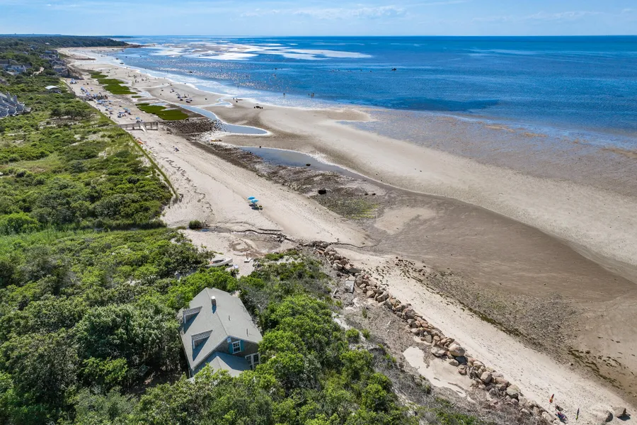 Once in a great while a hidden gem comes to light. Tucked away down a shady knoll off Route 6A in Brewster, you will find your beachfront corner of paradise. Set on a full acre of pristine land with a private beach, this seasonal quintessential Cape Cod cottage has been in the same family since 1936. Filled with charm, this four bedroom and one-and-a-half-bath retreat awaits your touch. Greeted by classic Cape shingles, white trim, and colorful shutters, enter the front door to pine walls and head upstairs to two bedrooms and a half-bath for guests. On the main floor, a short hallway leads to a sizable bedroom, the main living area includes a whitewashed wood burning fireplace and space for cozying up, or game nights, breezes from the beach and shady trees to keep it comfortable. The L- shaped kitchen has everything to eat in or prep for your day just outside the door at your beach! An additional bedroom awaits off the kitchen hallway and leads to the roomy full bath. Sunsets await you on the screened in porch! Enjoy the Brewster flats at low tide or the warm waters of Cape Cod Bay.