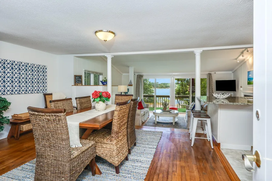 Ever dreamed of living in a treehouse, an easy carefree existence? Imagine it in this charming Cape Cod getaway where you can almost cast your fishing rod from a chair on your deck! Situated so close to everything, but perched on the hillside, tucked in the trees, hides this waterfront beach bungalow. From the first look in the door, you'll experience endless water views, a town landing below, and spectacular private sunsets. Out the back door with the kayaks and into Kelley's Bay in 2 minutes to spend the day exploring the inlets and estuaries along Bass River. Keep your boat around the cove at Mayfair boat yard and drop the family off at the town landing next to the house. Spend the day fishing in Nantucket Sound, or take a quiet afternoon ride to The Shanty for drinks, and be home in a jiffy. This Coastal cutie has been renovated with modern kitchen and baths, gleaming hardwood floors...