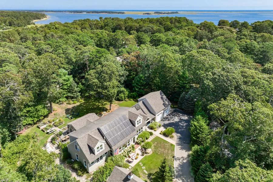 Located in Prestigious East Egg with association sandy beach, dock and mooring, which is a rare find. Stunning rebuilt designer/architect's sunlit home is in like new condition, and boasts beautiful hard wood floors, a gourmet kitchen with granite counters, a 6 burner DCS gas range, an additional electric oven and large central island. Formal Living and Dining rooms, as well as a den and family room. Large first floor primary ensuite with three more ensuite bedrooms on second floor, along with an expansive loft area for studio or office. There is a detached barn/ garage, perfect for your boat storage, studio or workshop. Large, inviting backyard and gardens with plans ready for a pool. Privacy galore abutting the woodlands of the Orleans watershed with access to lovely paths. All information deemed reliable but not guaranteed. Buyer/Buyer Agent to confirm any and all information.