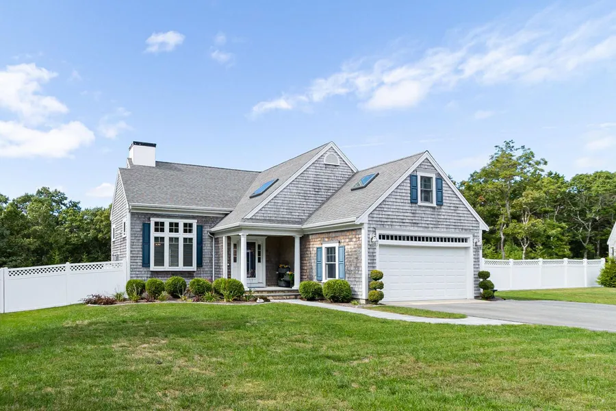 Located in the desirable Waquoit Meadows neighborhood, this 3 bedroom, 2.5 bath stunning home is situated on over an acre of land on a private cul de sac. Beautiful wood floors and soaring ceilings in the living area greet you at the front door. A custom stone wall and built-ins surround the gas fireplace. The dining room leads you to an expansive deck with a private, well landscaped view. The light and bright well-appointed kitchen features granite countertops, stainless steel appliances including two gas ovens, a walk in pantry and an abundance of windows for natural light. The primary bedroom features two walk-in closets and a private bath with a custom tile steam shower. A spacious half bathroom and and laundry room round off the first floor. Upstairs you will find two bedrooms each with ample closet space and a full bathroom for guests. Additionally, there is a large sitting area an...