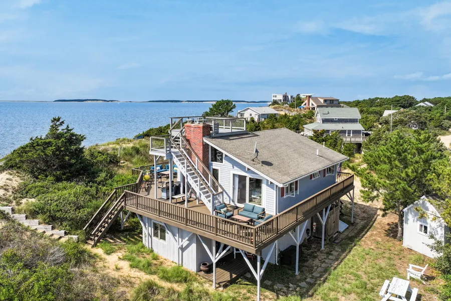 Bayside Beachfront with direct access to the Cape Cod lifestyle you have been patiently waiting for. Cross over an iconic wooden bridge and arrive at a place in harmony with the ebb and flow of the tides, yet safely outside of flood zones. Water views of Cape Cod Bay and beyond abound from this beachfront home tucked away from the woes of the world. Step back in time to yesteryear where Mother Nature affords you abundant riches: beach combing for oysters, stroll the beach with friends and family, paddle or kayak from your front yard, take a dip in the bay. Tranquility washes over you instantly. 3 bedrooms, 2 bathrooms, 2 family rooms, a bonus room for an office/spillover. Decks galore for outdoor living and a roof top deck to watch magnificent sunsets. Fireplace to enhance off season use. Wonderful opportunity to transform this into your own private sanctuary, where new memories are wai...