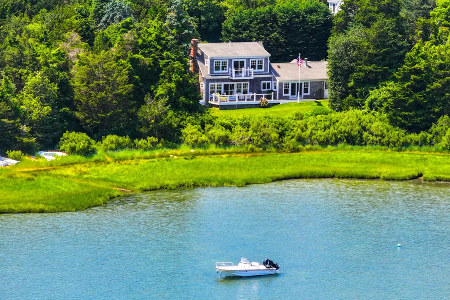 A rare waterfront gem at Sheeps Pasture Point was custom renovated and designer decorated. In like new condition and perfect for a small family or for downsizing. Panoramic everchanging views of salt water from most rooms. Designer kitchen with upscale appliances. A large Dining area with tray ceiling, fireplace with custom built-ins, and sliders to the deck make it perfect for entertaining. Large sunlit living room with fireplace and walls of glass for beautiful views, as well as another set of sliders to the deck. A bright 1st floor bedroom suite with a bath. A den on the first floor can serve as additional sleeping quarters, and there is a beautiful guest half bath. The home was remodeled to add a second floor spacious, primary ensuite bedroom w/deck, spa dream bath plus sitting or office area all with stunning salt water views. A private path leads to salt water on Robert's Cove and Mill Pond for beaching, clamming or boating. Mooring per Harbor Master. Live the Cape Lifestyle at it's best in this amazing home in one of Orleans most desired locations.