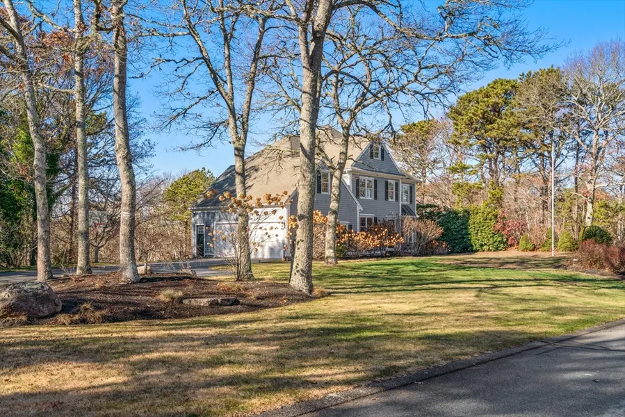 Stunning sunny 3 Bedroom Colonial in the premier neighborhood of Ballymeade, one of Cape Cod's most unique golf communities with access to top tier golf and all that Falmouth has to offer. This property offers privacy and treetop views and abuts conservation land. With an open floor plan, the first floor offers a kitchen w/ quartz counters, breakfast bar and an island that leads to a beautiful bay window eating area. The kitchen leads to the family room with gas fireplace and sliders to oversized deck and another set of sliders to a sunroom with wraparound windows, dining room, living room/office, & a half bath. Upstairs is a primary bedroom w/ walk-in closet, primary bath and a Juliet balcony, two more ample size bedrooms, bonus room with built-ins and picture window, laundry room & full bath. Excellent expansion potential with unfinished spaces on walk up third floor and walk-out basem...