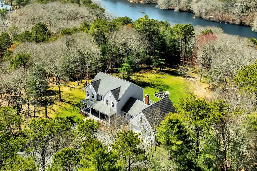 Welcome to this stunning 4BR/3BA Waquoit colonial on the scenic Moonakis River. Set on 1.73 private acres, this home blends timeless charm with modern updates. The light-filled chef's kitchen features quartz counters, stainless appliances, custom cabinetry, built-ins, and river views. Formal and informal living rooms each have a fireplace, perfect for entertaining. A 1st-floor bedroom and bath offer flexible living. Mudroom and attached 2-car garage add convenience. Upstairs, the luxurious primary suite includes a jetted tub with water views, walk-in shower, and large closet. Two more bedrooms and a full bath provide space for guests. The partially finished basement offers a rec room, office, and storage. Hardwood floors throughout, plus updates including roof, windows, HVAC, and whole-house generator. Natural gas heat and whole house generator. Enjoy birdwatching, kayaking, or relaxing on the back deck after a rinse in the outdoor shower. A peaceful waterfront escape!