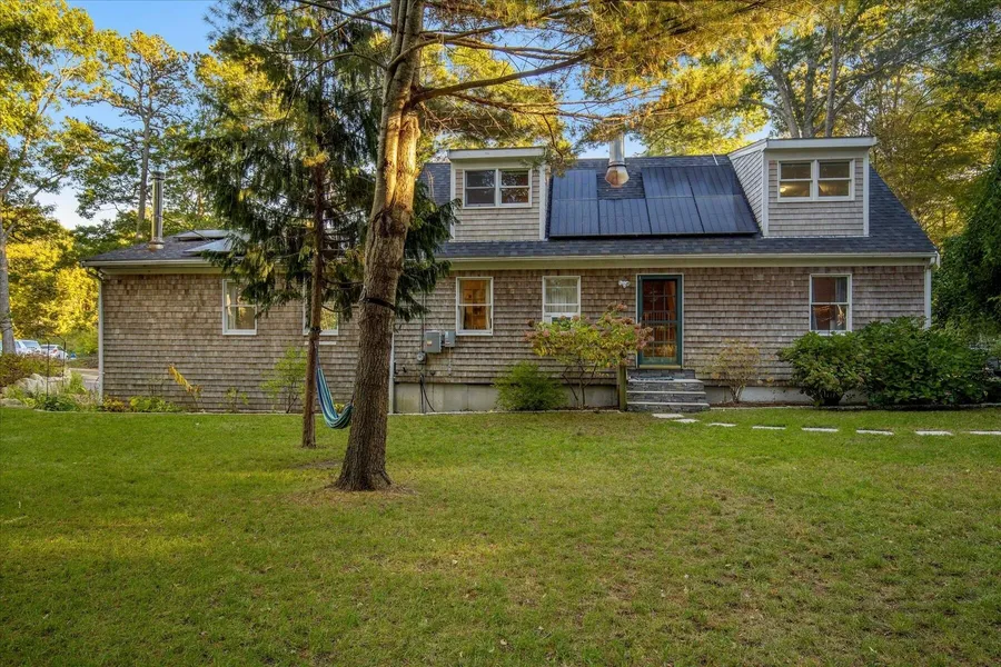 Tucked in the heart of Falmouth near scenic cranberry bogs and conservation trails, this thoughtfully updated 3 BD Cape with a den offers the perfect blend of privacy and comfort. Set on a lush, tree-lined lot, the home's inviting shingle exterior and solar panels hint at both classic Cape charm and forward-thinking efficiency. Inside, sunlight fills the open floor plan featuring a bright, renovated kitchen with gas cooking and spacious living and dining areas complete with wood-burning fireplace and wood stove. The flexible layout includes multiple work-from-home or play spaces, while the serene primary suite offers a peaceful retreat. Outdoor living shines with a sprawling landscaped yard and mature trees for shaded sitting. A two-car, insulated garage, walk-out basement - possible ADU, and 4BD septic complete this well-maintained home. Minutes from Mashpee-Falmouth line amenities, bea...