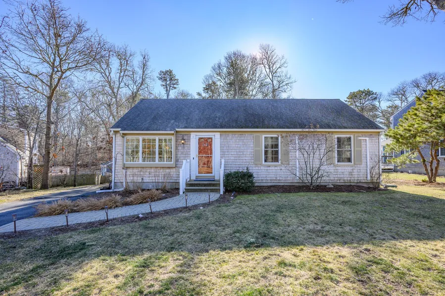 Charming ranch nestled in a delightful cul-de-sac neighborhood, perfect for year-round living or a seasonal getaway. Designed for easy one-floor living, this home features an open living and dining area leading to a deck for outdoor dining, an updated white cabinetry kitchen, a primary bedroom with a private bath, two guest rooms, a guest bath, and first-floor laundry. Many previous improvements include updated windows, while recent upgrades feature a new hot water heater and efficient heat pumps to keep you cool during Cape Cod summers and warm in the winter. Outdoor living shines with a new patio and fire pit-ideal for al fresco dining, toasting marshmallows, or quiet relaxation. The basement offers ample storage or potential expansion, while the outdoor shower and shed are perfect for stowing beach gear and bikes for quick rides to the nearby Cape Cod Rail Trail. Conveniently located ...