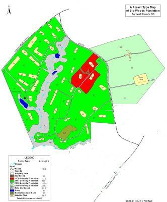 Big Woods quail hunting plantation was designed by a joint effort of The Albany Quail Project and Tall Timbers Research Station of Georgia. In a rural setting just outside Barnwell, South Carolina is this unique property with over 2 miles of paved road frontage. Access throughout the tract is provided by over 4 miles of interior dirt roads providing all-weather access over rolling hills and beautiful terrain. The property is made up of primarily of planted pine ranging from 9-35 years in age. The older pine was thinned as recommended per the specialists mentioned above. Some 85 acres of pine-hardwood drain traverse the property providing water and game travel corridors throughout. The property developers have strategically located 35 wildlife plots totaling 48 acres throughout the property for optimum use to attract and hold game.