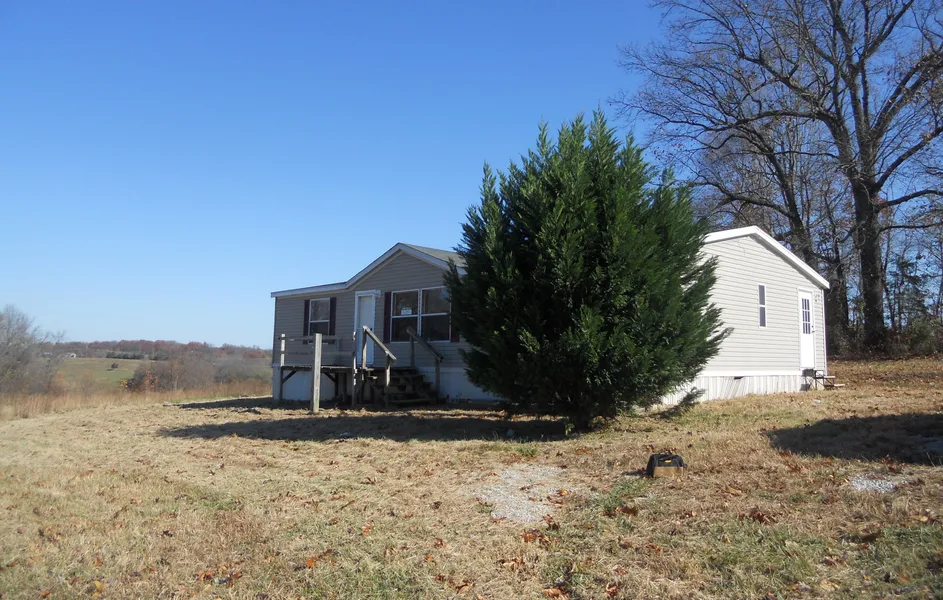 Nice 2000 model, 27'x48' doublewide on 9.414 acres with a fantastic view for miles. Partially wooded in back. 18'x15' storage building. Foreclosure. Some light fixtures and CH&A unit are missing. Otherwise, in good condition. Non-permanent foundation.