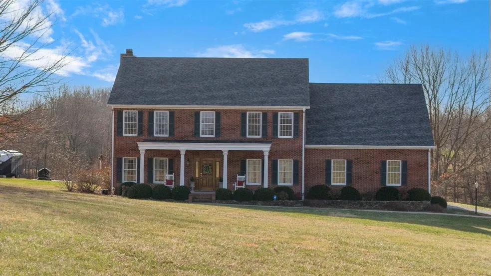 Set on 13.85 picturesque acres, this custom one-owner brick Colonial home offers just under 3,000 square feet of timeless design. Inside, the home offers classic spaces including a formal dining room and living room, and a warm and inviting family room with a gas/wood-burning fireplace perfect for gatherings or quiet evenings at home. The open floor plan flows in to the beautiful kitchen featuring beautiful brick accents, a gas range, an abundance of cabinets, granite countertops, and a generous island. Upstairs, you'll enjoy three generously sized bedrooms include a spacious primary suite featuring two walk-in closets, a sitting area, and a spa-like bath with a beautifully tiled shower and separate soaking tub. A study/office with a closet could be a 4th bedroom. The 1,280-square-foot basement offers abundant storage, serves as an excellent storm shelter, and provides outstanding potent...