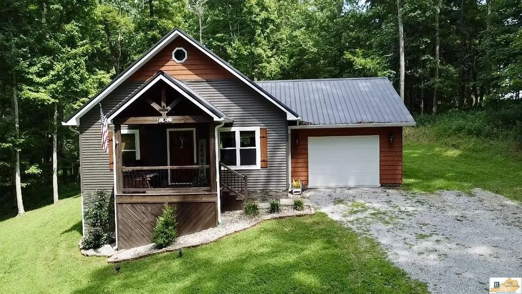 This 2-bedroom, 1.5-bathroom, 1,344 sq. ft. home sits on a 0.66-acre lot on Barren River Lake, just minutes from Beaver Creek Boat Ramp. Featuring an open-concept living area with soaring wood-paneled ceilings, a cozy loft, and a stylish spiral staircase, this home is full of character. The spacious kitchen boasts rich cabinetry, stainless steel appliances, and a gorgeous dining space perfect for entertaining. The luxurious bathroom features a spa-like shower with elegant tilework and modern fixtures. Upstairs, the loft provides a versatile space with barn-style doors for storage. Outside, enjoy peaceful wooded views and a private garage—perfect for storing your boat or lake gear. A truly one-of-a-kind home. Whether you’re looking for a weekend getaway or a full-time retreat, this lakeside home has it all!