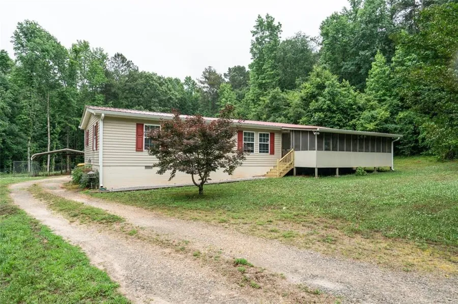 A spacious 3 bed, 2 bath home sits on a 2 acres level lot with NO HOA. Outside features a fenced side yard, detached 2 car carport as well as a 1 car carport. The outside also features a barn-style storage building. You can enjoy your favorite beverage on the huge front porch. Inside has a fabulous kitchen with a breakfast bar and a view of the living room. Enjoy the open floor plan with keep cool with new central A/C system. The home provides a split bedroom floor plan with the master on main. The master bath has a double vanity as well as a tub/shower combo. In 2019 new hardwood floors were installed as well as carpet. The home has low-maintenance vinyl siding and a metal roof.