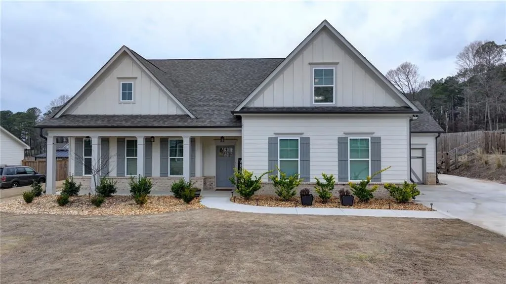 This Practically NEW CUSTOM Hawthorne plan is a farmhouse-style home is Breathtaking with its views on a 1 acre lot. Four bedrooms/3 baths with THREE car garage make this home anyones dream. The exterior features hardiplank siding with brick accents. An open concept floorplan featuring a soaring vaulted ceiling in the family room with laminate hardwood floors throughout main living area. The kitchen boasts granite countertops, custom cabinetry, luxurious lighting and large island. The views to the family room allowing use of the kitchen and enjoyment of the family at the same time. A spacious master suite & bath with large custom shower complete this beauty. Over one acre lot with NO HOA conveniently located to schools, shopping and Hwy 316! A Brand New Above Ground Pool, Entertainers Deck for all gatherings, Partial Enclosed Back porch and Gas Grill Patio are the perfect place for every...