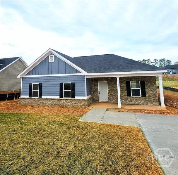 Welcome to this newly constructed, MOVE IN READY, 4-bed, 2-bath home! Walk into the house from the covered front porch to find 1541 sq. ft. of modern convenience. This single-level home features a laundry room off the dining area and a primary private ensuite, combining that convenience with comfort. The 100% LVP flooring, new double vanities, and kitchen bar seating showcase the thoughtful design of this charming home. Relaxation and entertainment are both achievable with the covered front porch and the gorgeous backyard, perfect for envisioning a play area, garden, firepit, or future outdoor oasis. Located in growing Statham, this home combines modern living with small-town charm, giving you the perfect blank slate to make it your own. Do not miss your chance to find your forever home! *Note: Home is almost complete with some photos being stock. This home is ready for a 30 to 60 day closing! Some photos may be enhanced with AI for curb appeal.