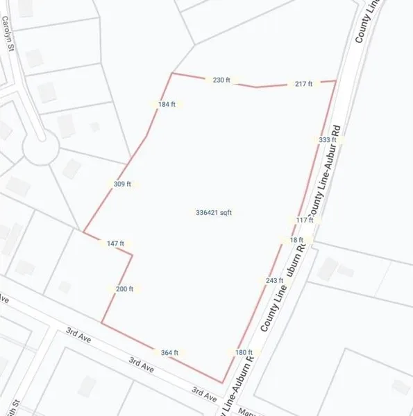 There is road frontage on two streets. Approx 891 feet of frontage on County Line Auburn rd and approx. 364 feet on 3rd Ave.