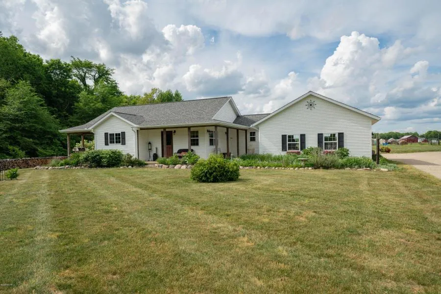 Country Home on 5 Acres-Delton. Built in 2011 & first time on the market. This energy efficient 5 bdrm/3 bath home is a must see! Features include open floor plan & plank hardwood floors throughout. Kitchen w/custom cabinetry, cool modern Concrete counters & stainless steel appliances. The Master Suite features walk in closet, bath w/soaker tub, tiled shower & private patio. Also on the main floor is a large mud/laundry room off the garage w/granite counters, tile floor & office space to work from home. An additional bdrm & full bath complete main floor. Basement level has nicely finished family room, 9 ceilings, 3 bdrms w/egress windows & full bath! The 1122 Covered Porch off the dining area is a great place to cookout & take in the peaceful surroundings. This delightful property includes a 3040 pole barn w/electric & water that offers space for livestock & storage. An adorable 1421 Potting Shed could have many uses. Perennial flower garden & plenty of space for your vegetable garden. Within short drive to either Kalamazoo or Battle Creek this property is sure to please! Call today for your showing.
